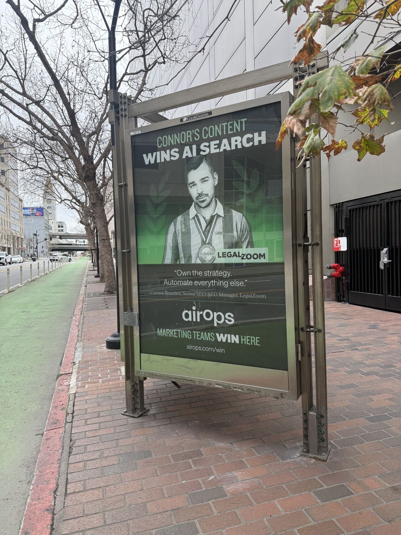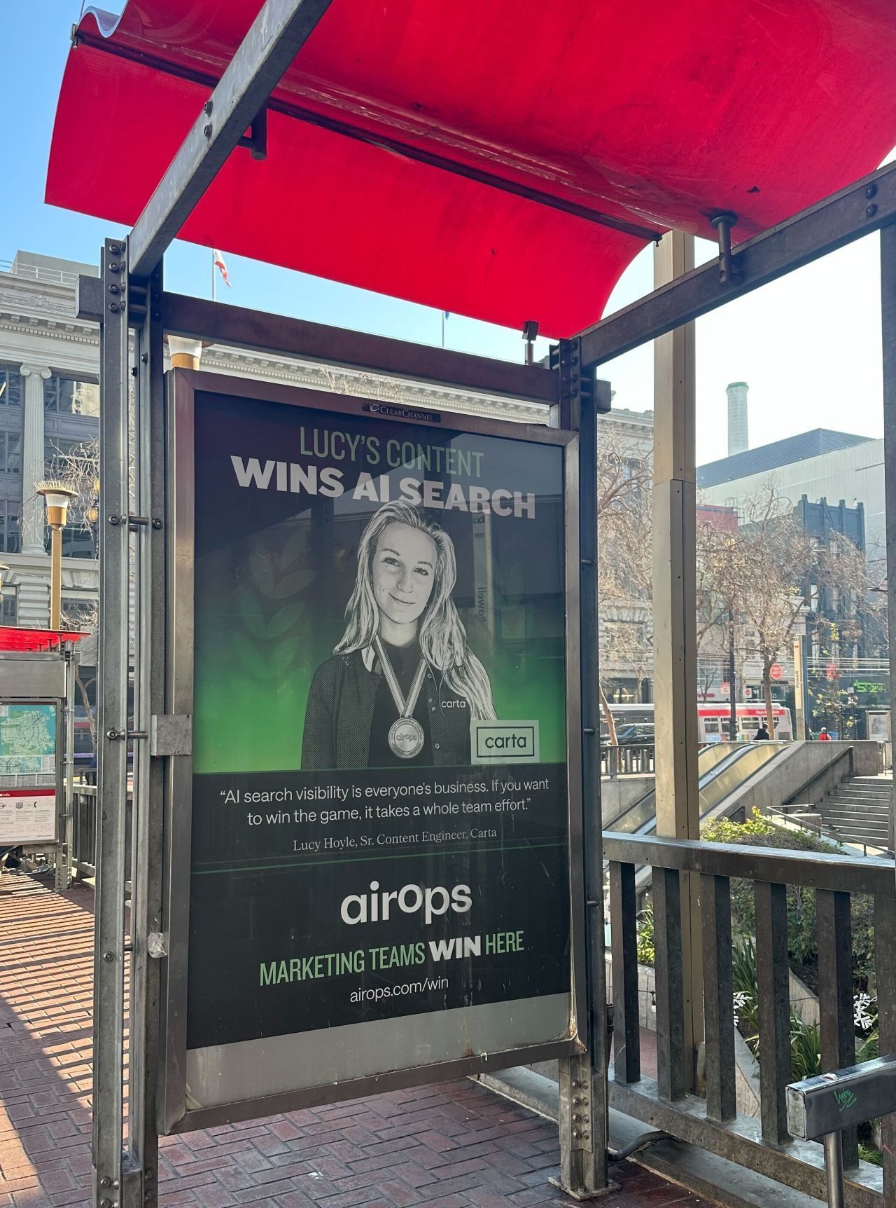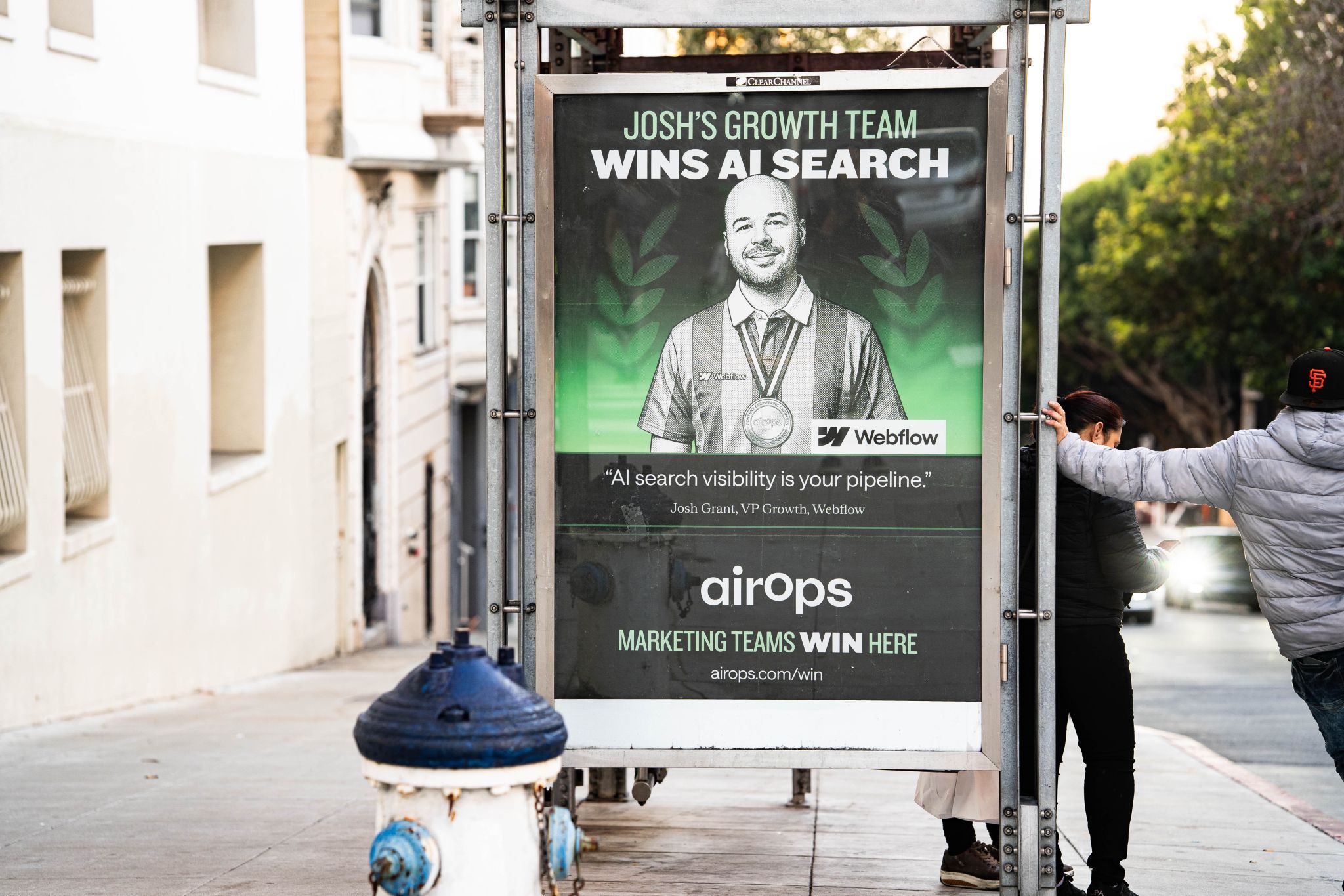 Jessica Rosenberg, Head of Brand at AirOps, captured this perfectly when describing their San Francisco bus shelter campaign featuring champions from Carta, Webflow, Chime, LegalZoom, and Docebo: